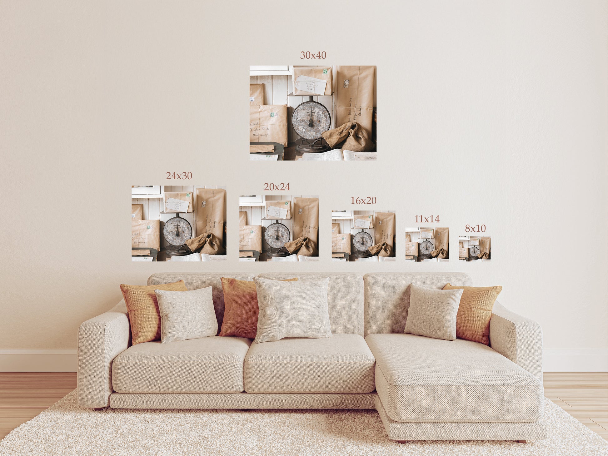 Vintage Parcel Wall Art – Rustic Post Office Scale Photography Print or Canvas